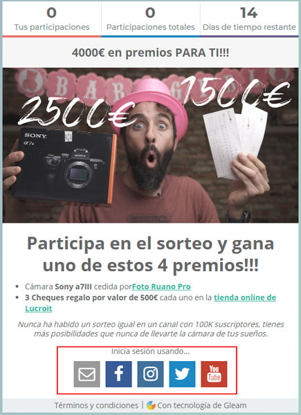 Ojo, por las comprobaciones. Mi cuenta de YouTube (Google) es distinta a la de Facebook e instagram. A ver si me voy a quedar sin premio por las tonterias