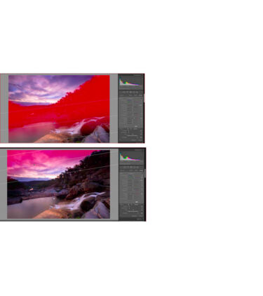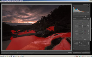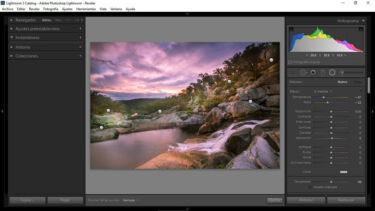 | Eh utilizado Lightroom cc2015. El procesado fue paso a paso de cada ajuste de Lighroom, no utilice pinceles, solo filtros radiales y graduados. Los radiales para dar esos tonos magentas y celestes al cielo. Y el radial para dar ese tono de «sol» con neblina |