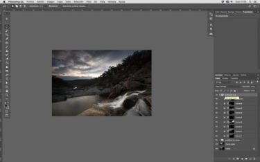 | He partido de tres revelados en Camera Raw, luego mediante máscaras los he fusionado escogiendo las partes que más me interesaban. El segundo paso es asignar una luminosidad a cada zona. Después voy tratando el contraste de forma local con máscaras de luminosidad.. Cuando tengo el contraste por zonas también ajuste el contraste de forma general. El «mood» lo he desarrollado de forma muy sencilla: un aspecto anaranjado al cielo mediante una capa de color y con una capa de ajuste curvas he realizado un ajuste general de color. |