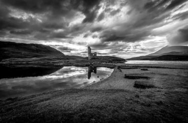 | Primero de todo, subir la exposición para no tener la imagen tan oscura, aplicar un filtro graduado al cielo para darle un poco más de dramatismo a la escena; también le he aplicado el pincel en el agua (el de mejorar iris, ya que para los ojos les da más brillo y aquí parece que no queda mal). En la de BN he tenido que aplicar otro filtro graduado en el cielo, en la parte derecha y aclarar la montaña de la izquierda para que no se vea tan oscura. |