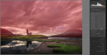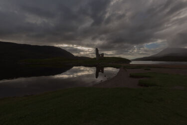 | RAW procesado por completo en LR. He ido buscando resaltar el cielo mediante filtro lineal. Levantar sombras en general de toda la imagen en la parte de tierra y trabajar con el pincel las zonas de hierba. He subido los colores de la hierba jugando con los amarillos y los verdes. Alguna zona de burn & Dogde en la hierba. Subir un poco los reflejos en el lago, tanto del castillo como de la montaña. |