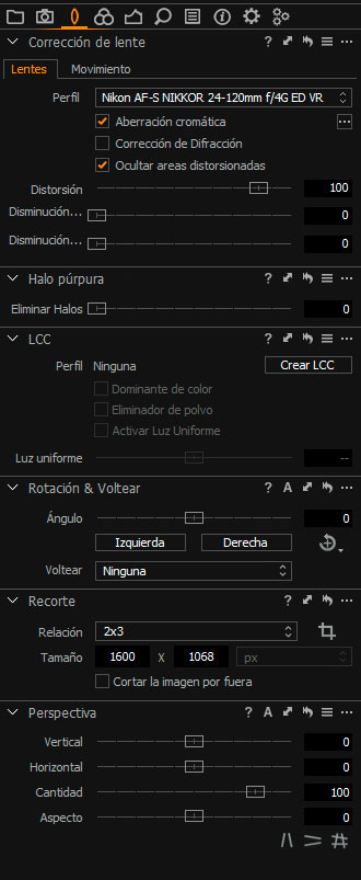 Desde esta pestaña también podemos controlar el resto de ajustes geométricos, recortes, orientaciones, perspectivas, etc…