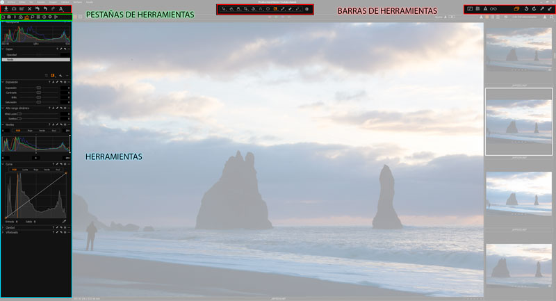 Con esto en mente vamos a ver las diferentes pestañas de herramientas que encontramos en Capture One 11.