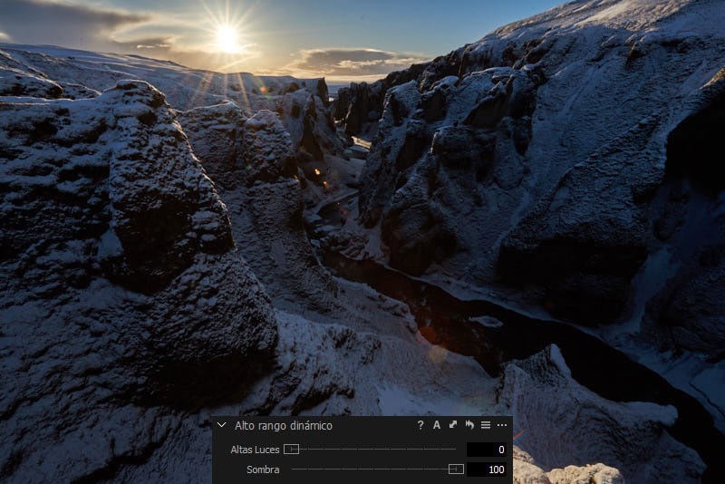 De manera muy resumida y gráfica, usando el deslizador de sombras vamos a incrementar la exposición en las sombras y utilizando el deslizador de altas luces vamos a bajar la exposición de las zonas más claras de nuestro Raw.
