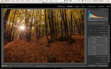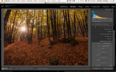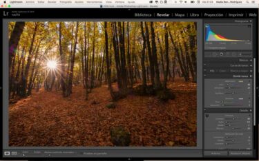 | Bueno, esta ha sido entretenida y lo sabes, Antonio. En este caso sí le he dado bastante caña, sutelizas fuera (o casi) y creo que lo que necesitaba esta foto era un ambiente totalmente otoñal y en eso he intentado centrarme. De entrada, en LR he realizado dos combinaciones de imágenes, por un lado las tres de la «manita» y por otro lado las otras tres con el sol, me gustaba el sol, pero no el resto, así que había que intentar combinar ambas versiones. Tras la combinación en LR, como digo, he obtenido dos imágenes a las que he relizado ajustes básicos y casi idénticos en LR. Luego en PS he fusionado las dos fotos mediante una máscara de capa para quitar la «manita» y quedarme con el sol. Luego ¡caña!: máscaras de luminancia y a contrastar un pelín, algo de dogde&burn para resaltar los troncos y ese primer plano, calentar la foto y… potenciar un pelín esos rayos de sol. Paso de nuevo por LR, subir a lo bestia los rojos y ocres (ya dije que quería una imagen otoñal), destacar un pequito mediante el pincel de ajuste el musgo verde de las piedras y el pie de los troncos (tengo que aprender cómo dar color en PS con las máscaras de luminancia), un poquito más de dodge&burn y, con el filtro radial, dar un pelín de «glow» alrededor del sol (deslizador borrar neblina). Finalicé en LR con el filtro graduado cerrando por debajo un poquito la foto y resirigiendo la luz. Nuevamente a PS, para darle un poquito de claridad dinámica y enfoque. Listos, a |