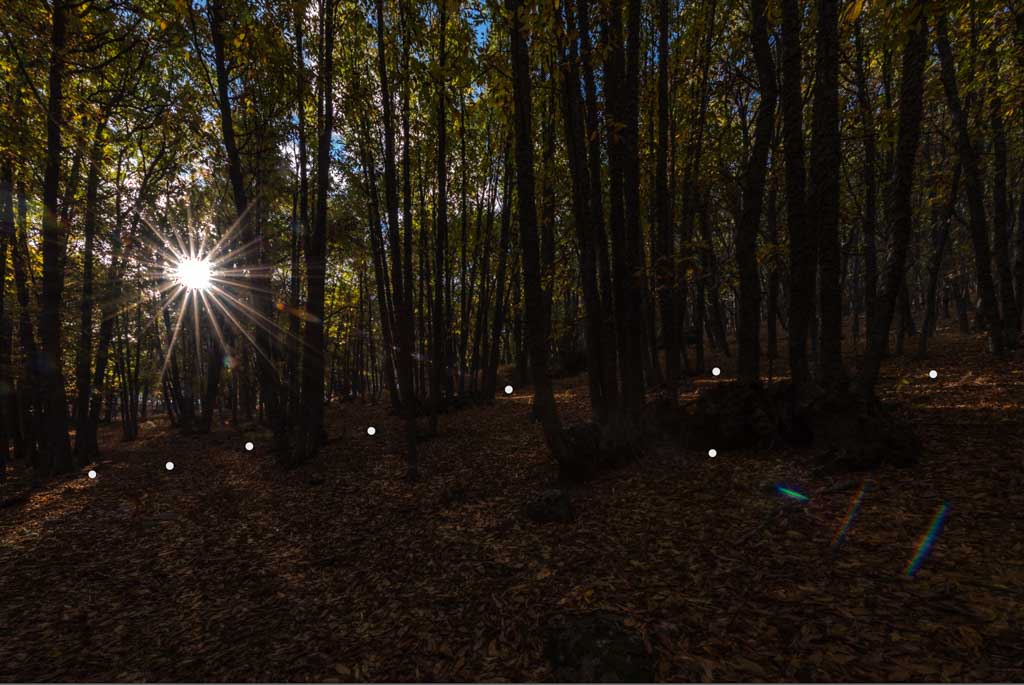 | Hola Antonio, vaya rompecabezas!!! No se si es lo que tenía que hacer pero he hecho 2 HDR, uno con las fotos del sol y otro con las de la mano, y después de procesarlas por separado en lightroom (siguiendo al pie de la letra tu tutorial de paisaje de otoño), las he juntado con un copia y pega en photoshop, borrando con máscaras la mano en la foto original y todo menos la mano en la otra. Después un poco de claridad dinámica usando las máscaras de luminosidad, dodge and burn y finalmente dos capas de tonos con máscara de degradado, una para dar un tono más rojizo al suelo y la otra aumentando la luminosidad en toda la parte del bosque para dar un toque de luz neblinosa. Aquí he tenido que esforzarme en decir ya está!! o no hubiera parado nunca… |