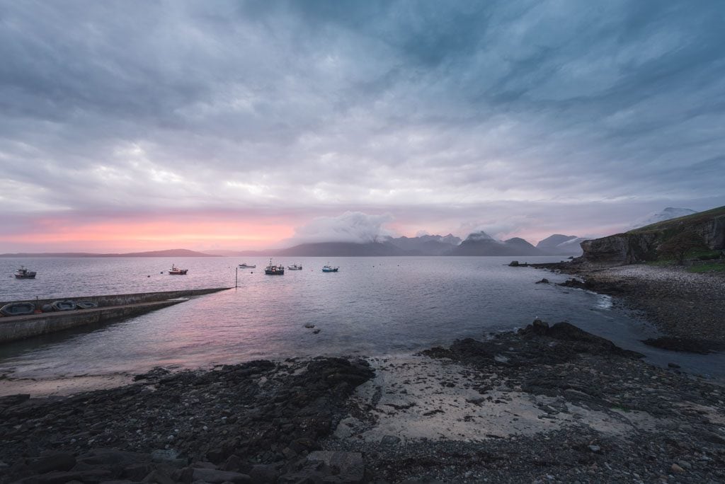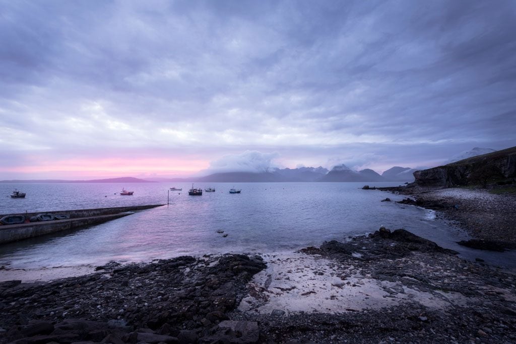 | Sólo Lightroom. Correcciones básicas de contraste, altas luces y sombras. Levanto sombras en primer plano y tierra en la derecha de la imagen para realzar detalles y aumento contraste en cielo. Aporto un pequeño viñeteo para centrar la atención en el grupo de barcos y las nubes sobre el mar. |