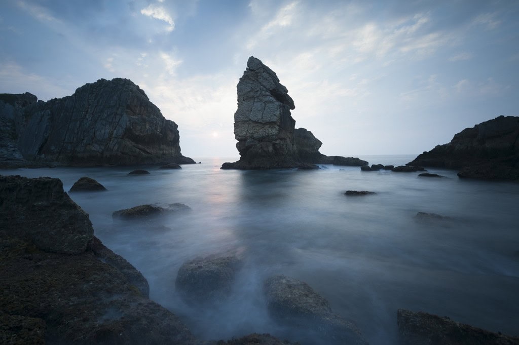 [dropcap type=»dark»]L[/dropcap]a playa de la Arnía es uno de esos paraísos fotográficos que plagan la costa cántabra, sobre los que destaca especialmente la Costa Quebrada. El tramo costero que separan los arenales de Liencres de la península de la Magdalena es un disfrute paisajístico incomparable con una diversidad geomorfológica que no dejarán a nadie indiferente. No en vano este tramo litoral de cerca de 20 km es uno de los Puntos de Interés Geológico en el inventario del IGME, y sus acantilados de vértigo, sus formaciones rocosas sumergidas en el cantábrico, y el estruendo del mar harán que no te quieras ir de esa zona sin conseguir TU FOTO.