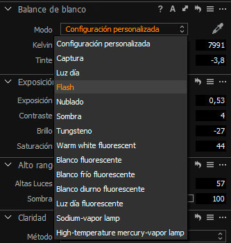 Y una vez tengo ajustada la temperatura de color y el tinte tal y como me gusta, es el momento de seguir con las herramientas de exposición.