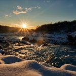 Y otra cosa que puedes hacer es darte la vuelta, dejar la cascada de Bruarfoss a tu espalda y fotografiar el curso del rio Bruara aguas abajo. En Invierno seguramente tengas el sol cerca del horizonte, con lo que podrás captar espléndidas fotografías con un precioso sunstar
