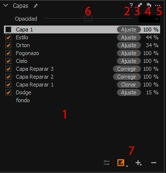- Barra de opacidad: controla la opacidad de la capa que tengamos seleccionada