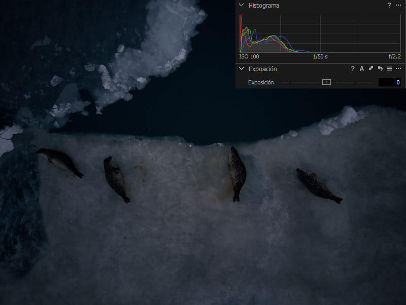 - Ajusto la exposición global, fijándome en los avisadores de exposición