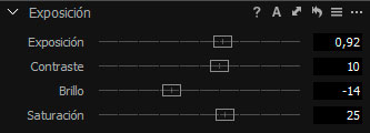 - Exposición: contiene las 4 herramientas “inteligentes” que van a controlar los aspectos principales del histograma del Raw.