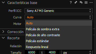 Tenemos la pestaña de Perfil de Color ICC que va a asignar a nuestro Raw el perfil de color de la cámara que estamos utilizando. De cualquier modo, podremos seleccionar el perfil de color de cualquier otra cámara si así lo deseemos. Por ejemplo, puedes tirar con una Nikon D750, pero por algún motivo que desconozco querer aplicar el perfil de color de la Canon 5D Mark IV. Pues ale, ningún problema.