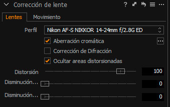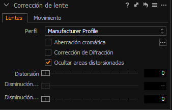 Esta herramienta, poco atractiva la verdad, incluye una serie de ajustes predefinidos para la mayoría de lentes más populares. Las correcciones incluyen la distorsión, aberración cromática, difracción y el viñeteo tanto de luz, como de pérdida de nitidez (esquinas blandas).