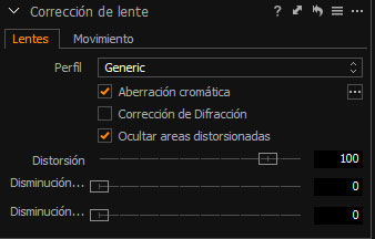 - Viñeteo: Corrige el viñeteo que aparece en algunas lentes en las esquinas.