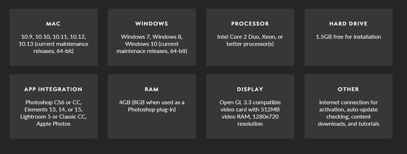 Y los requisitos para que funcione ON1 Effects son los siguientes: