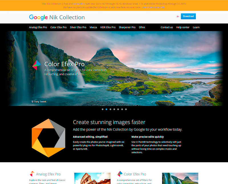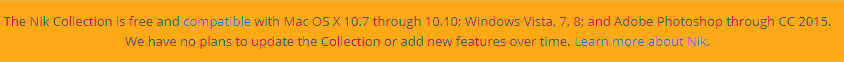 Resumiendo, hace unos años Google adquirió la suite a Nik, posteriormente los puso en descarga gratuita, lo cual parecía una buena noticia, pero desde el año pasado decidió dejarlos morir. Si como lo oyes, en su página Google anuncia que no va a dar soporte a los filtros Color Efex Pro, así que en cuanto se han ido actualizando los sistemas operativos, y las aplicaciones de Adobe, Color Efex Pro han ido dejando de funcionar poco a poco. Por ejemplo en la última actualización de Mac a Sierra ya no admite la instalación de este paquete de filtros, así que la gente que llevaba años trabajando con ellos, y que los tenía muy incorporados en su flujo de trabajo se han quedado tirados.
