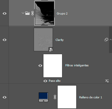 - Añadimos una capa de claridad a la toma (aquí podéis hacerlo de varias formas: llamando a camera Raw, añadiendo un filtro de paso alto, o la más cómoda, ejecutando una acción que se incluye en el Panel Tony Kuyper: claridad dinámica)