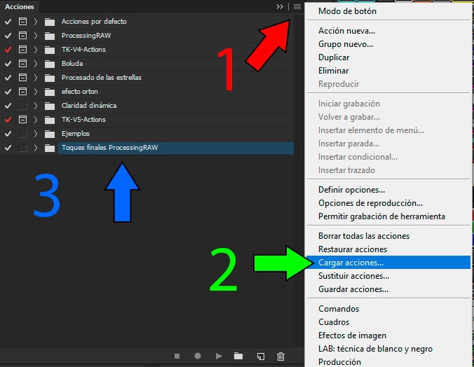 - Abre la ventana de Acciones de Photoshop (Menu ventana>acciones)