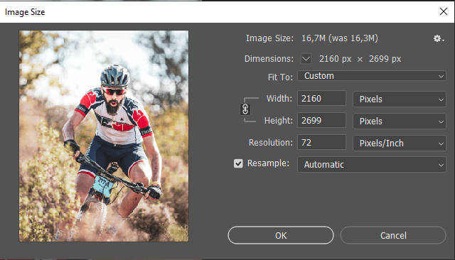 De nuevo desde el cuadro de diálogo de «Guardar para web» y escogiendo el tamaño deseado en el apartado de horizontal (el vertical se adaptará a este lado por lo que es importante que hayáis recortado la imagen al tamaño deseado previamente (recomendado 4:5)