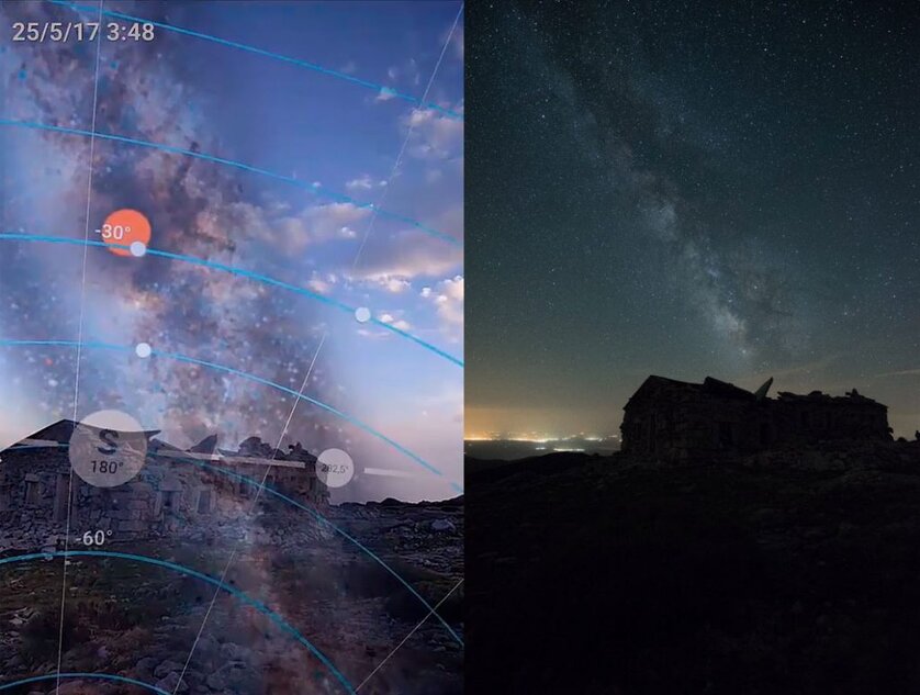 En nuestro ejemplo me he colocado en el lugar desde el que tenía pensado fotografiar la vía láctea, he abierto la realidad aumentada nocturna y voilá: