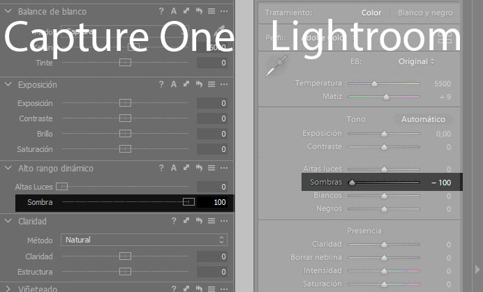 Para muchos puede ser una faena que no se mantengan todos los ajustes, pero es que es materialmente imposible que entre programas tan diferentes como Lightroom y Capture One se puedan mantener los ajustes de revelado más complejos. Para empezar porque tienen diferentes nombres, diferentes comportamientos, etc… Por ejemplo, el deslizador de sombras en Lightroom es un deslizador que va de -100 a 100. Mientras que el equivalente en Capture One, el deslizador de Sombra (dentro de la sección HDR) tiene un rango de 0 a 100. ![]()