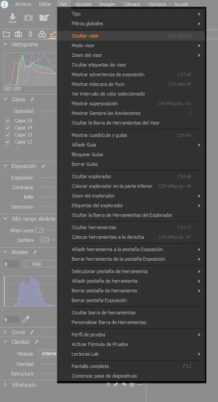 Lo mejor de todo esto es que vamos a poder personalizar todas y cada una de estas áreas, moviendo las herramientas a la derecha, el navegador a la izquierda, o abajo, ocultando cualquiera de ellas. Para ello, tenemos las opciones de ir al menú “ver” desde donde podremos ocultar el visor (CTRL+ALT+V), ocultar las herramientas (CTRL+T), ocultar el navegador (CTRL+B), o cambiarlos de sitio pulsando la tecla Mayús junto al atajo anterior. ¡Prueba a ver cuál es tu espacio de trabajo favorito! Hay muchas posibilidades.