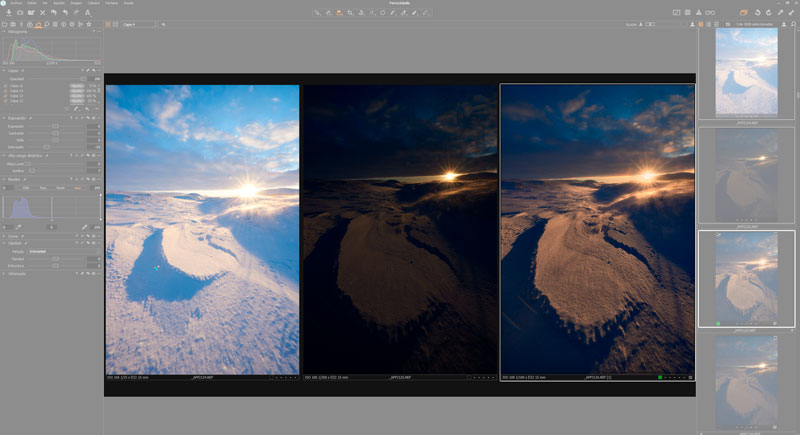 Quizá la parte más simple de explicar de la interfaz de Capture One. El visor va a mostrar la imagen (o imágenes seleccionadas en el explorador).