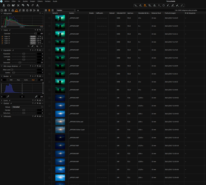 Una pregunta, yo llevo utilizando Lightroom des de siempre. Por el tipo de fotos que hago y el revelado que me gusta acostumbro a trabajar mucho con los negros subidos a más del 60%.