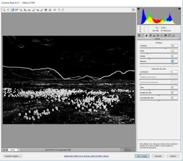 - Suavizar la imagen un poco. Al ser un atardecer de este tipo, creo que como expliqué en el tutorial para procesar atardeceres, debe predominar la suavidad general de luces, de colores, bajos contrastes…