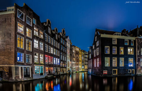 Aquí tenéis mi versión de «Los canales de Amsterdam», he intentado corregir las 3 cosas que indicaba en un principio, pero con el cielo, prácticamente me he rendido, y ese era el motivo por el cual este RAW estaba descansando en el baúl de las fotografías no reveladas…ya en su momento no encontré solución decente y hoy igual. Si algo tengo es que nunca cambio cielos, no me gusta, no estoy en contra pero no me gusta (salvo en dobles exposiciones para sacar la vía láctea, y para hacerlo bien aquí tenéis este tutorial). Luego HE CORREGIDO LA DISTORSIÓN DE LA FOTOGRAFÍA, y después en photoshop le he aumentado el contraste tonal en la zona baja del histograma, he aumentado la saturación en la zona de las ventanas, y le he dado un efecto orton en la parte del fondo, siguiendo el sencillísimo tutorial que os enseñe hace unas semanas. Es muy sútil, pero esta imagen me lo pedía…(y por lo visto en las versiones, no he sido al único ;-)). Además le he intentado dar un puntito más de luz en esa zona central, ya que es hacia «donde quiero que se os dirija la mirada».