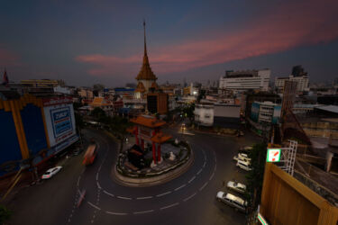 El caso es que tenía esta fotografía en mente, se corresponde con la rotonda que hay a la entrada de Chinatown, un lugar bastante icónico de la ciudad. Para tomar la fotografía, hay que subir a la planta 3 de un parking para poder tomar esa perspectiva, así que allí me dirigí…que ocurrió? lo de siempre en Bangkok, al acercarme a la entrada, la mujer que estaba en la puerta del parking me dijo qu eno podía entrar…menudo bajón, 1 h de caminata, para hacer la foto, y me dice que no puedo subir. Yo le pregunté los motivos y me dijo que no podía y punto…total, que como ya llevaba 2 dias allí, me olía lo qu epasaba, la señora, me vio con mi cámara y mi trípode y estaba esperando que le diera dinero para permitirme el paso, algo que no soporto la verdad. No por la pasta…al final es tan poco dinero que es un regalo, pero el momento «soborno» puede conmigo, asñi que me di la vuelta cabreado y me fui. A todo esto, mi compañero aleman, que es más espabilado, me dijo «de verdad, con el coñazo que nos has dado para venir aquí, te vas a ir, por no darle 1€? Y él directamente le dio a la señora el billetito, que aceptó sin rechistar y con la mejor de sus sonrisas me invitó a subir…en fin, una anécdota más de como funcionan allí las cosas…