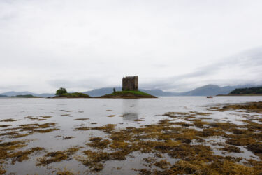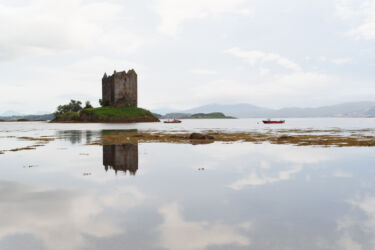 Ya sabéis que Escocia es tierra de Castillos y paisajes de ensueño, muchas veces mezclados en la misma escena, y uno de ellos es el Castillo de Stalker, no es de los más visitados, (de hecho no se puede visitar), pero para mi es de los más chulos. Realmente es un torreón, pero su peculiaridad es que cuando sube la marea se encuantra totalmente aislado de la zona terrestre, en una pequeña isleta. Eso le da un encanto especial ya que te retrotrae a qué pudo pasar en dicho castillo, princesas secuestradas, asedios imposibles, defensas a muerte…la imaginación vuela en esta zona, y es que es normal!!!!