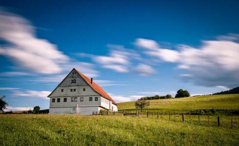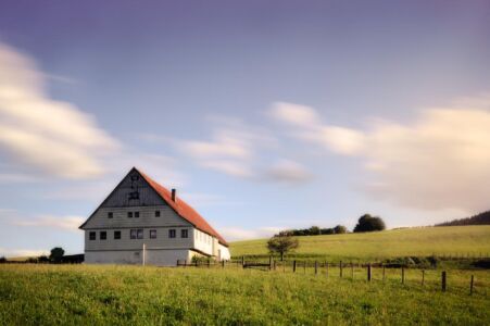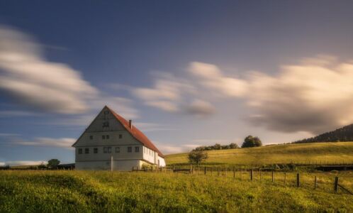| Realizo un ajuste de colores básico en Camera Raw acentuando los colores verdes y una corrección de lente para enderezar la caseta. Cambio el cielo de la imagen porque no me decía nada. Le aplico un efecto Orton al 30% y aplico un enfoque progresivo al cesped para darle más realismo. Intento orientar la luz mediante máscara de luminosidad y resto un poco de contraste al edificio. |