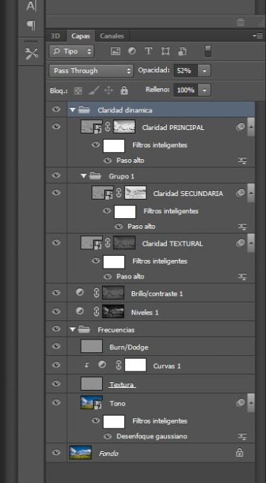 | Hola amigos, vamos a por este raw: Que necesita: pues a mi parecer, centrar la atención sobre la casa en la que intensificare tejado y esquina donde cambia de luz a sombra. Luego cerrar la imagen por la parte superior e inferior izquierda. Y para finalizar darle esa calidez y colorido “de ensueño o fantástica” de una forma sutil. Procesado: esta vez al no disponer de Lr, casi todo lo he hecho en Camera Raw y capas de luminosidad. En camera raw un procesado casi idéntico a Lr con sus filtros graduados, radiales y pinceles para dodge and burne. Y en Ps, con capas de luminosidad para contrastar y darle mas énfasis a las nubes. Por premura y al no disponer de mi ordenador no fui dando pantallazos al procesado en camera raw, así que me tenéis que disculpar por solo adjuntar la capa de Dodge and Burne de las nubes. |