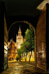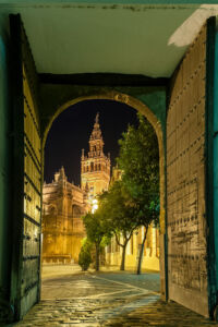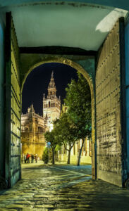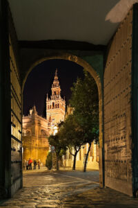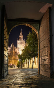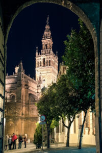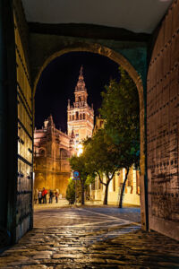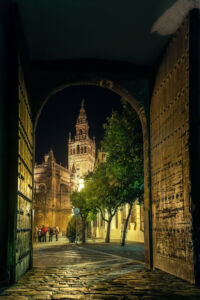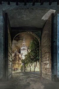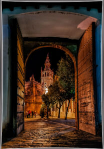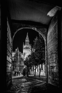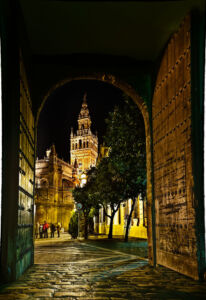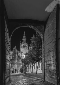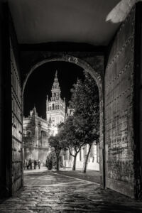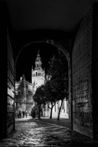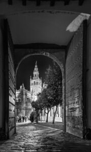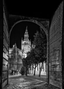 Me encanta, y leyendo el procesado se nota que sabías lo que hacías. La foto era una locura a nivel balance de blancos con 3 iluminaciones diferentes, lo has corregido genial. El encuadre me gusta bastante muy bien enderezadas esas puertas. Y bien clonada esa señal!!! Si te cepillas al grupo te coronas también!!! Lo peor para mi gusto, las luces en la Giralda, creo que los blancos se han quedado «rarunos», pero vamos, me parece un muy muy buen trabajo.