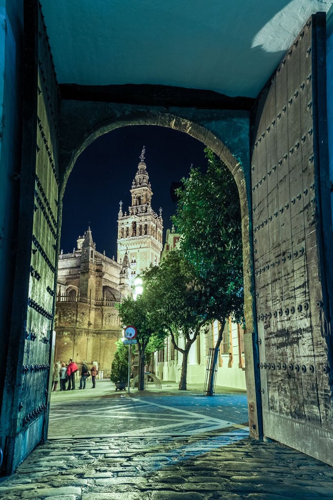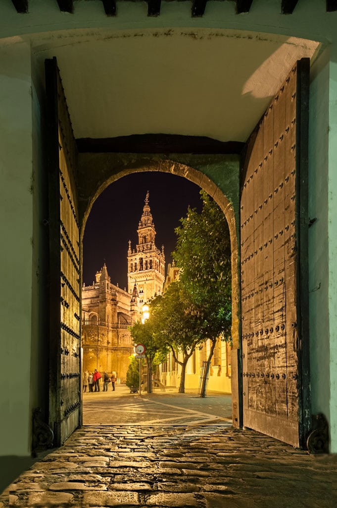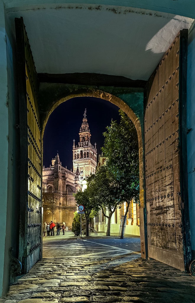 Me encanta, y leyendo el procesado se nota que sabías lo que hacías. La foto era una locura a nivel balance de blancos con 3 iluminaciones diferentes, lo has corregido genial. El encuadre me gusta bastante muy bien enderezadas esas puertas. Y bien clonada esa señal!!! Si te cepillas al grupo te coronas también!!! Lo peor para mi gusto, las luces en la Giralda, creo que los blancos se han quedado «rarunos», pero vamos, me parece un muy muy buen trabajo.
