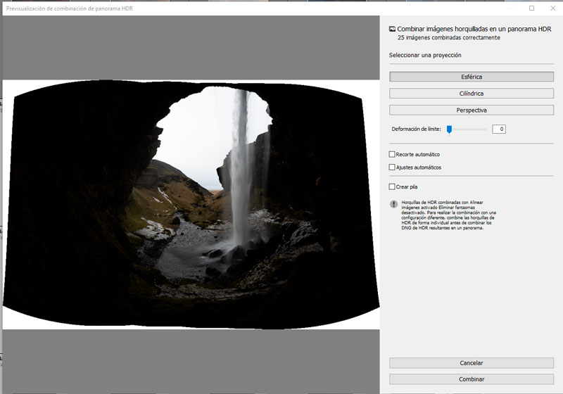 No es una novedad en sí, simplemente es la posibilidad de hacer lo que ya se podía hacer, pero en un solo paso. ¿Antes muchos de nosotros cuando teníamos una panorámica con bracketing teníamos que pensar qué tocaba hacer antes…el bracketing y luego la panorámica? ¿Hago la panorámica de cada bracketing y luego el HDR? Bueno, había pros y contras para cada cosa, y ahora es Lightroom el que se va a encargar de hacerlo todo en un solo click.