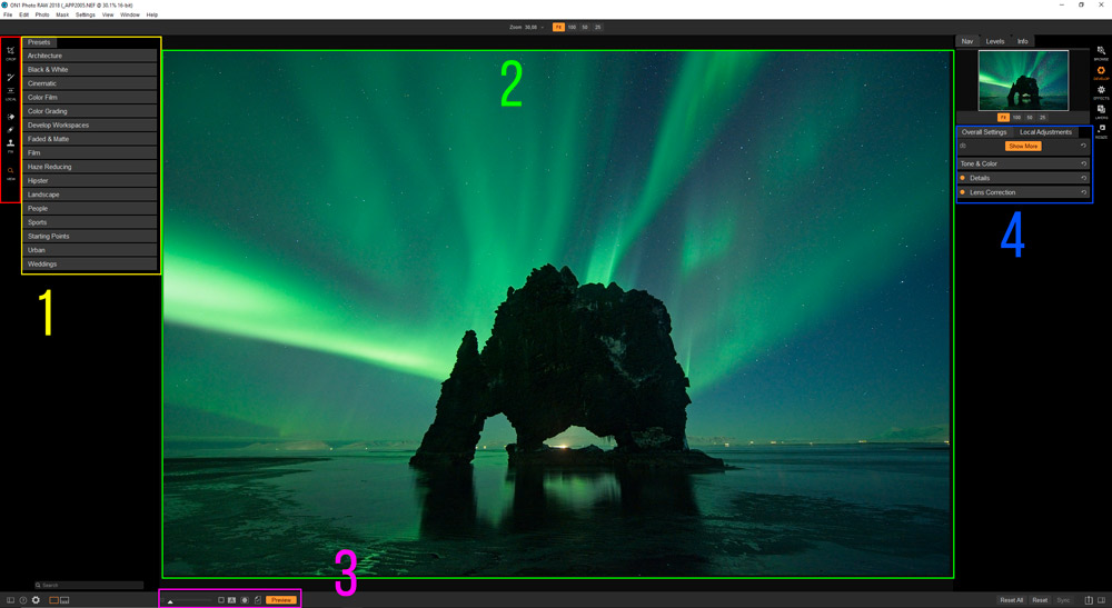 ON1 PhotoRAW 2018: Módulo de Revelado