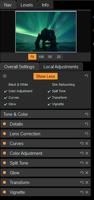 Como veis, no solo están todas las herramientas que encontramos en Lightroom, si no que aparte tenemos algunas más, como GLOW, que nos van a permitir llevar nuestros archivos un poquito más lejos.