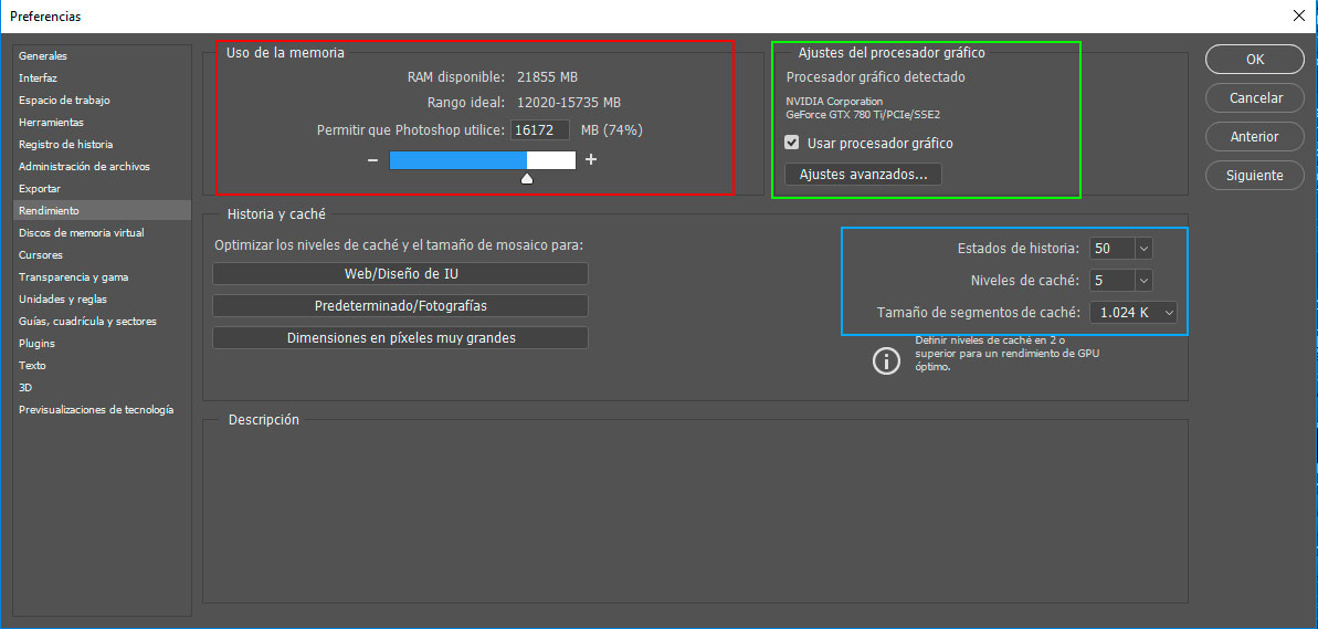 - Optimización de las preferencias de Photoshop