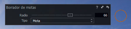 - Ajusta el radio del cursor para cubrir la mancha a eliminar. Se puede hacer desde el deslizador de radio, o arrastrando el radio del cursor manualmente