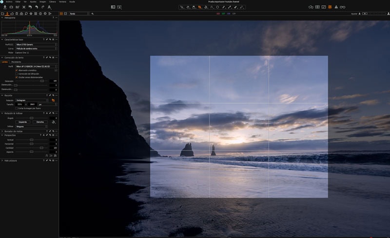 Esta es una de las herramientas que normalmente utilizo directamente con atajo de teclado (tecla C) y si no, lo hago directamente desde la barra de herramientas superior. De todas maneras, la he metido en la pestaña de Lentes para que NUNCA se me olvide realizarlo, o al menos pensar en la posibilidad de utilizarla. Ya sabéis que el recorte de una fotografía afecta de manera en la percepción y la composición final de nuestra imagen, así que es algo a lo que le tenemos que dar bastante importancia.![]()
