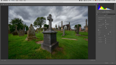 | Un procesado muy basico. Como los que suelo hacer. Le di fuerza al cielo para meter un poco de tenebrosidad, y luego al resto le dí más contraste, subi sombras, equilibré blancos y negros, subí un poquito claridad, ajuste lente, y con el pincel de ajuste creé unas sombras cerca de las lápidas. |
