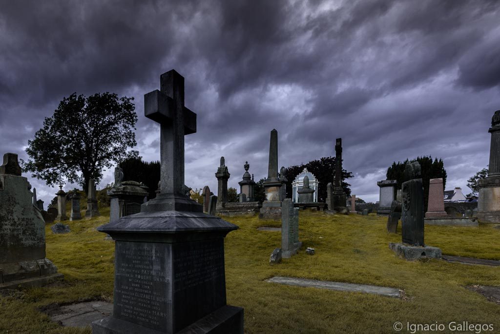 | Cuando miré esta foto vi una tarde de tormenta ,asi que todo ha girado en ese sentido,contrastar mucho las lapidas ,un poco de dodge and burn en la hierva y intentar potenciar sin romper el cielo,muy importante si quieres que parezca tormentoso…como siempre en photoshop con objetos inteligentes luego en modo lab,contrastar , color y enfoque por canales ,y con una mascara borrar lo que sobra…perdona que no te haya mandado pantallazos pero me he hecho un lio pensando lo bien que le pegaria un B/N y no he hecho ninguno.Espero que le guste a la peña. |