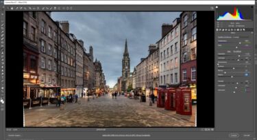 | En este procesado he procurado, después de enderezar los edificios, dar fuerza a la iluminación de la calle; la que hay en las ventanas, comercios, etc. También he bajado las altas luces del cielo para darle fuerza y un tono más grisáceo. ¡Espero que te guste! |