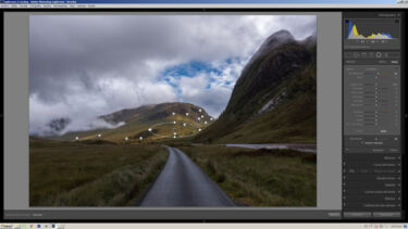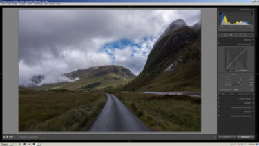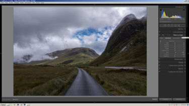| Pues lo que le falta a esta foto es sal y pimienta. Un buen paisaje escocés que se precie, te confunde. No sabes si estás en el cielo o en el infierno (frío). En fin. Pretendo meter a ambos -cielo e infierno- en la imagen. Una desapacible tarde con un fondo luminoso que invita a salir corriendo para allá a calentarse un poco al tímido sol que se cuela por las nubes. La imagen está orientada al Este. Luz casi cenital. Antes que nada la imagen me pide girarla un poco, porque ese río de la derecha, que tiene aspecto de estar más alto que la carretera me molesta. Parece que tiene que desbordarse hacia la carretera. Es muy poquito, pero me tensa. Esto lo dejo para el final, porque el recorte me va a hacer perder parte de la imagen. Y otra cosa. El asfalto es negro. Sobre todo este recién puesto. Los brillos de la carretera son un dolor siempre. Antes de empezar siempre bajo unos 2 pasos la exposición para estimar qué puedo llegar a encontrar en las altas luces, y luego subo 1,5 para estimar las sombras. Además aprovecho para repasar a 1:1 la imagen. En este caso voy a quitar lo que parecen unos vehículos al fondo que me molestan. Dos puntitos de clonado y andando. Hay también dos puntos en el cielo que parecen motas del sensor. Lo mismo. Entramos en faena. A, B, C. Lo de siempre. Luego cierro un poco la imagen con un radial enorme para ir orientándome en lo que quiero. Me paso deliberadamente. Uso otro radial para el monte del fondo, un poco de intensidad y un poquito de claridad. Juego con exposición y saturación para compensar el verde eléctrico que me sale. Con el pincel, pinto la carretera de negro (menos exposición, claridad y contraste). Cuidado con empastar alguna zona en negro. Un poco de claridad en las hierbas de los laterales de la carretera. Pinto el río con un pelín de azul, para enfriar la zona. Bajo saturación del cielo, que el azul por ahí me molesta porque llama demasiado la atención. Un filtro graduado para empujar las nubes al dramatismo (quizá en exceso, pero se trata de jugar ¿no? ). Ahora replanteo el filtro radial grandote del principio y ajusto. Y D&B. D: Praderas del fondo y volúmenes de la montaña derecha. B: peñas del monte del fondo y poco más. Paso por Photoshop y estiro la imagen. (se repiten las hierbas de la derecha y los postes de la izquierda, pero no los he quitado para que los veáis). Ahora corrijo la horizontal para que el río no esté tan alto. Es muy poquito, pero me da tranquilidad al ver la imagen. Puedo entonces recortar sin perder detalles importantes como la cumbre. Al final decido recortar a 16×9, y ya que estoy de nuevo en LR, doy un par de pinceladas de luz en las cimas de la montaña. Y me obligo a parar y la envío. |