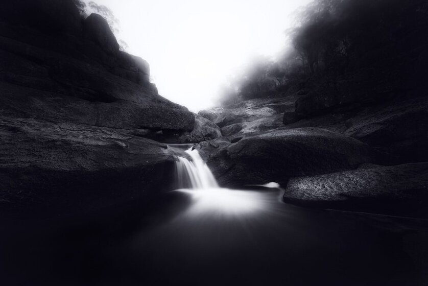 Como podéis ver es un archivo que tiene muchas interpretaciones, estoy convencido que un buen revelado en color le iba a venir de perlas, pero…esa cascada aislada en el centro me invita a probar con un blanco y negro…vamos a ver que conseguimos…