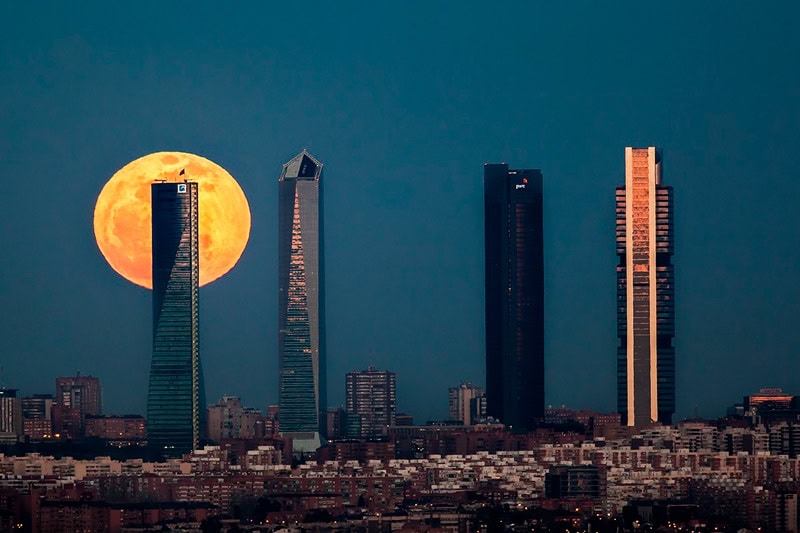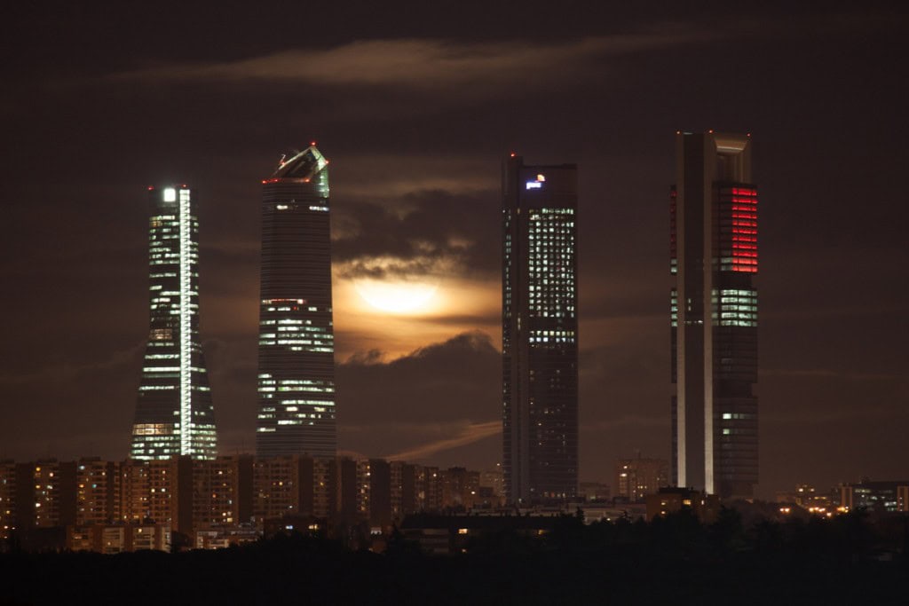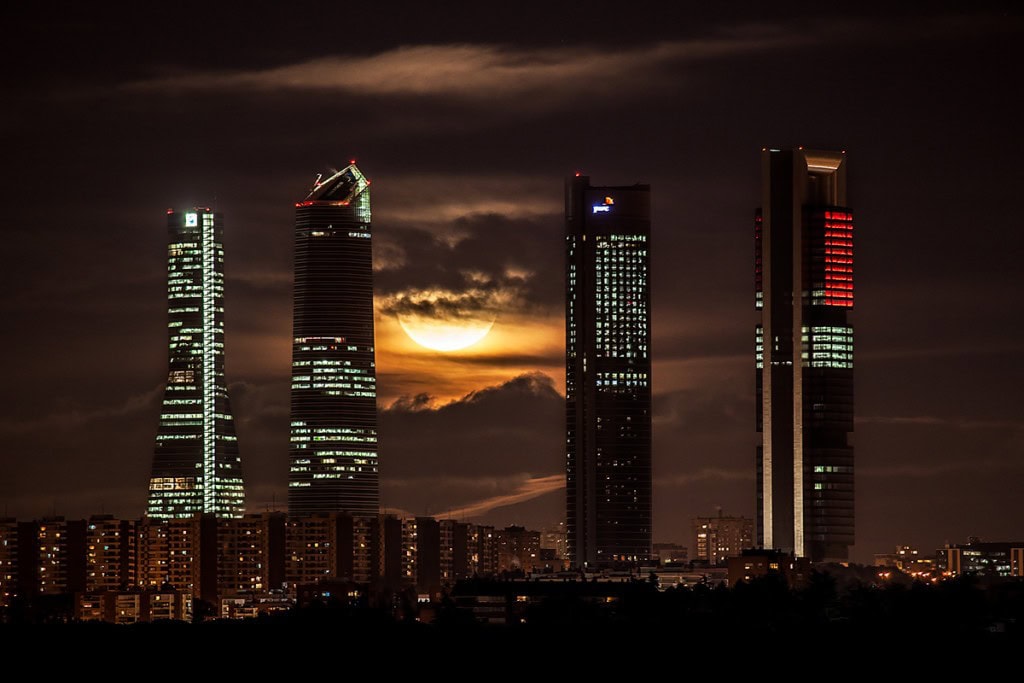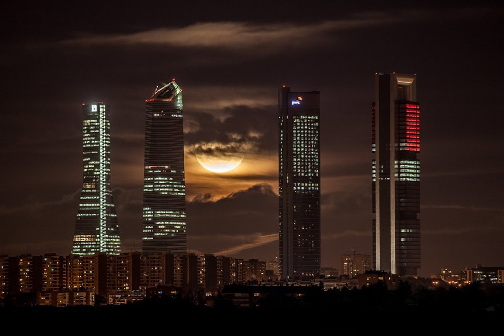 Desde hace ya algún tiempo, y siempre que me es posible, todos los meses intento buscar la mejor localización para poder fotografiar la Luna llena entre las 4 Torres de Madrid. «Hechizo de Luna«, es como titulé en mi web, la primera vez que pude inmortalizar esa instantánea que tenia en mi cabeza desde hace tiempo. Fue por el año 2011. Ese año, año coincidió con el paso de la luna por el perigeo (punto de la órbita lunar más cercano a la Tierra), por lo que la distancia entre la Tierra y la Luna es menor y la Luna no se podría ver tan cerca hasta dentro dentro de 19 años. Fotografiar la luna llena es un placer para los sentidos